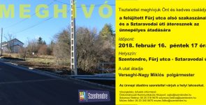 Szentendre város önkormányzata tisztelettel hívja az érdeklődőket a felújított Bimbó utca ünnepi átadójára 2018. március 12-én hétfőn 17 órára. […]