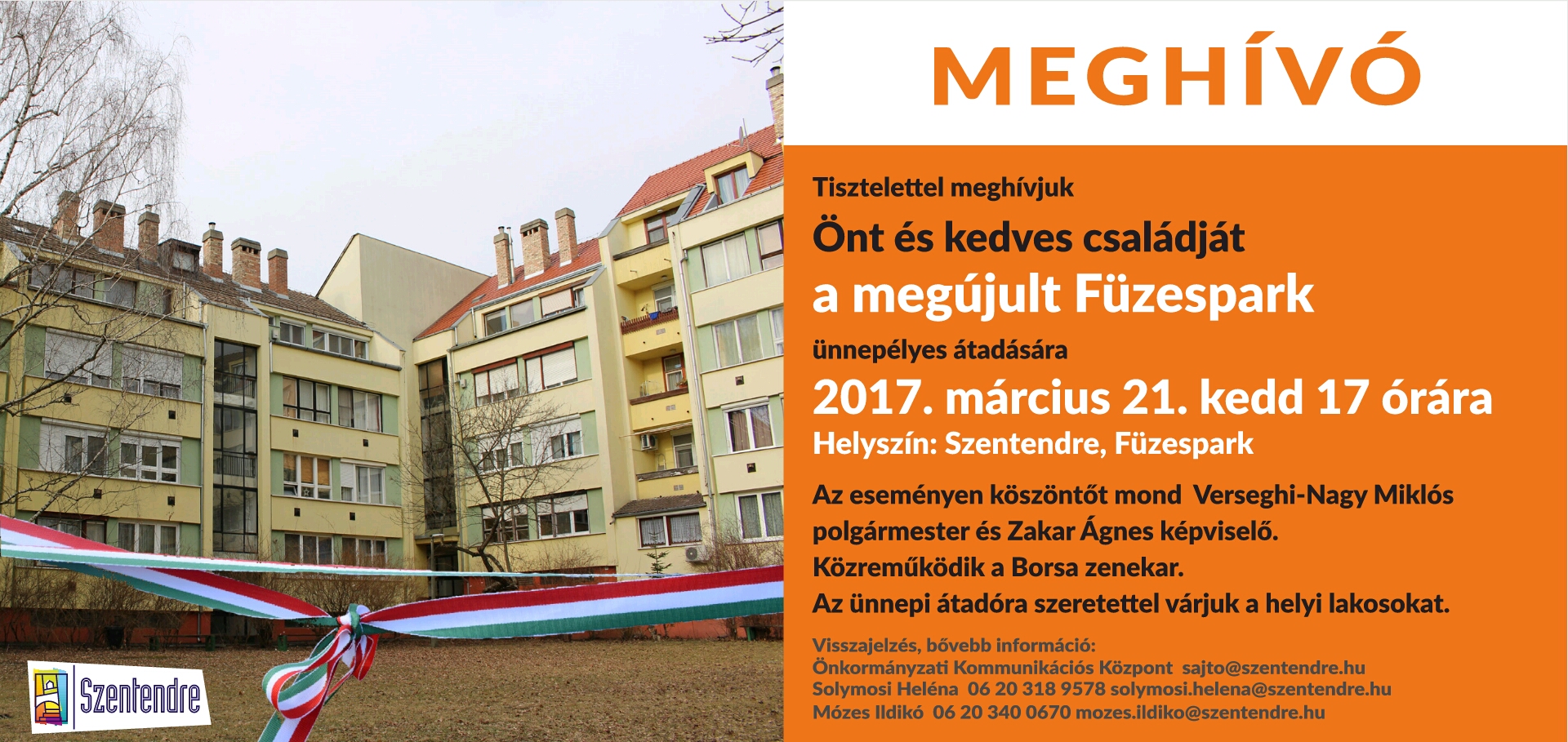 Közösségi tervezés nyomán, önkormányzati beruházásban újult meg a Füzespark lakótelep több közösségi tere és funkciója. A beruházás ünnepi átadóját 2017. március 21-én tartjuk, melyre minden érdeklődőt szeretettel várunk.