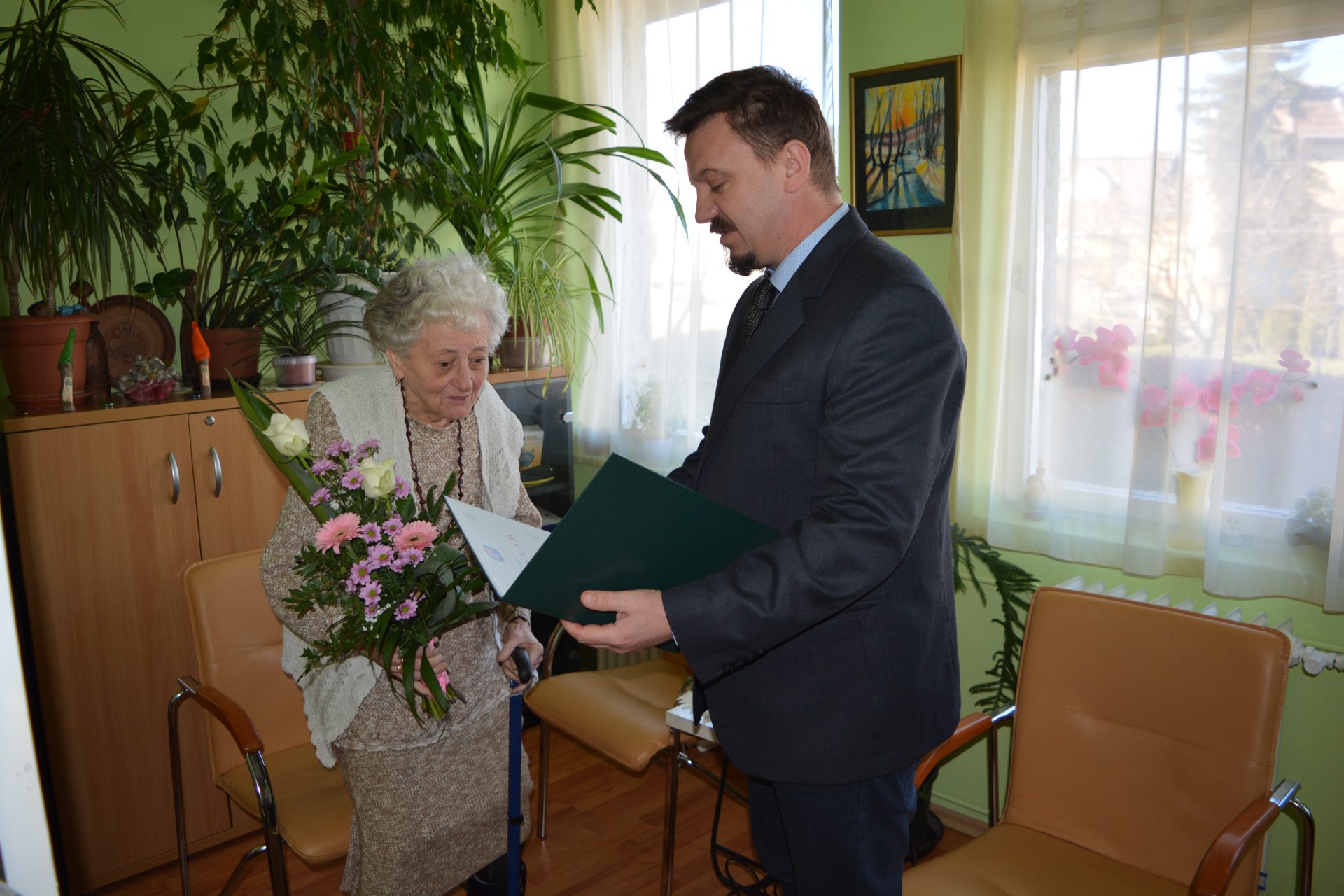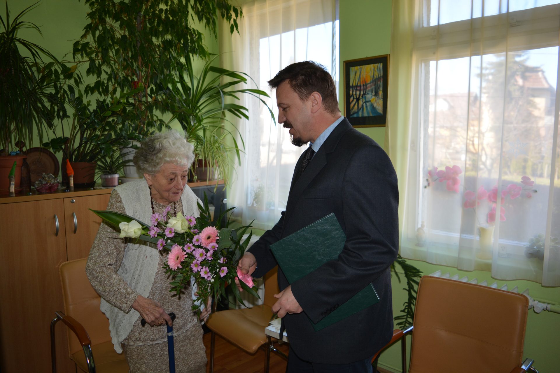 Babuczay Istvánné, Ilonka néni 1926. január másodikán, Budapesten született, de évtizedek óta Szentendrén él. 90. születésnapja alkalmából Petricskó Zoltán alpolgármester köszöntötte a Gondozási Központban, ahol Ilonka néni hétköznapokon „bejárósként” napjait tölti.