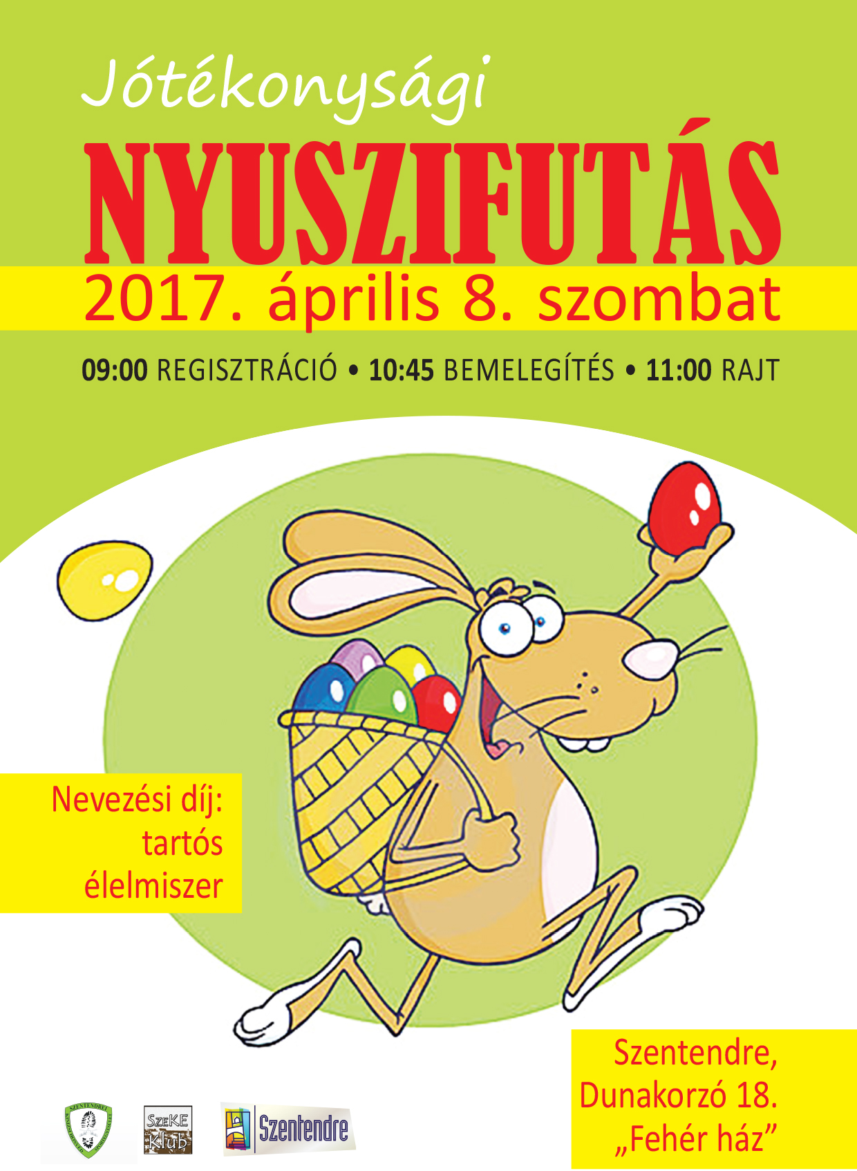 A jótékonysági nyuszifutás 2017. április 8-án indul a Fehérház (Szentendre, 2000 Dunakorzó 18.) elől a Duna-korzón. A kb. 2 km-es szakaszt a ház előtt 11.00 órakor rajtolva, a Rév utcánál visszafordulva a kerékpárúton lehet megtenni futva, gyalog, sétálva vagy akár babakocsival.