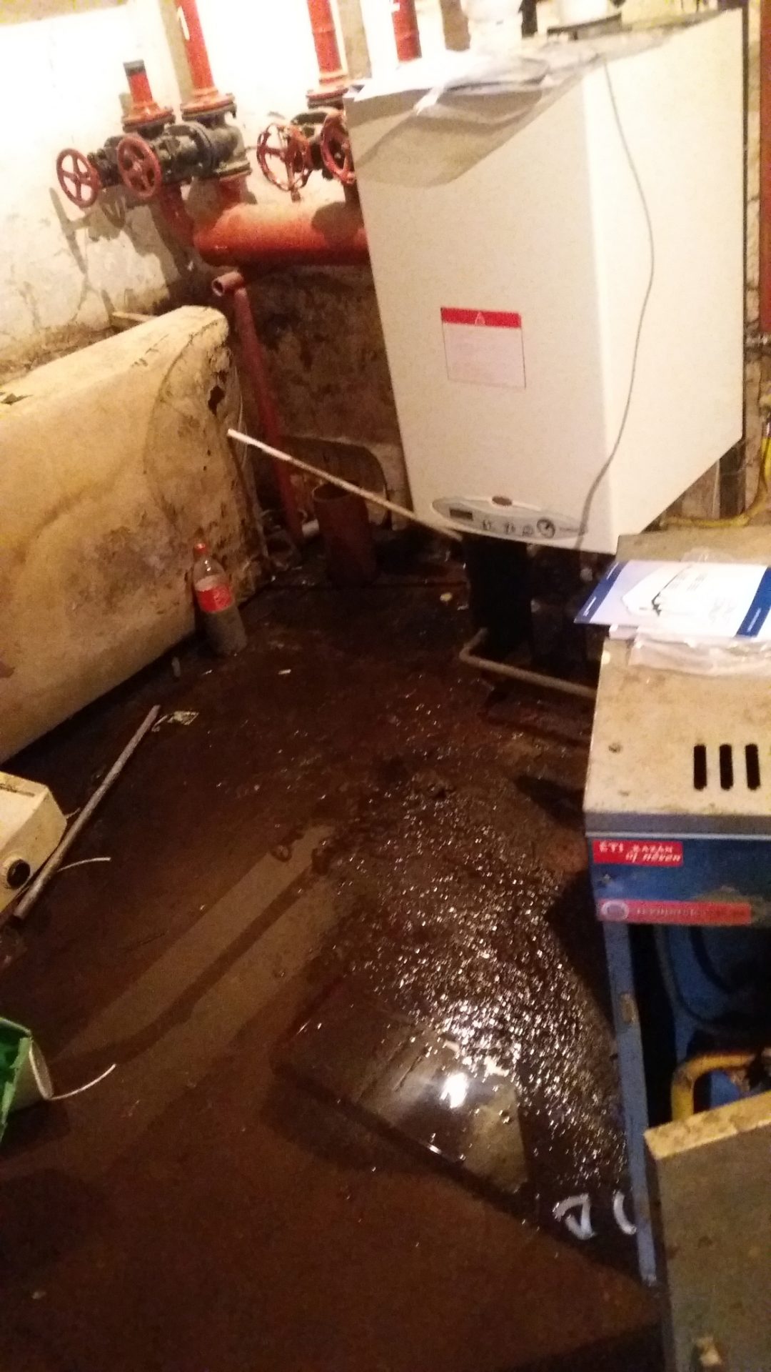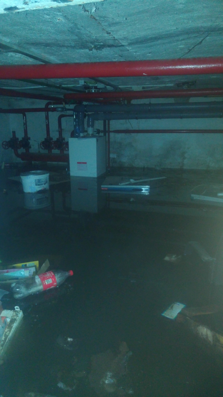 A bejelentést követően a divízió munkatársai, valamint a Távfűtési Divízió fűtői, azonnal a helyszínre mentek és megállapították, hogy víz tört be a kazánházba. A vízbeömlés magassága olyan mértékű volt, hogy a víz sajnálatosan a kazánt is ellepte. A helyszínre haladéktalanul szivattyúkat szállítottak, ugyanakkor a kazánfűtőkön kívül további két munkatárs kézi erővel, lapáttal vödörbe merték a padlón lévő vizet, melyet a szivattyúval már nem lehetett elérni.