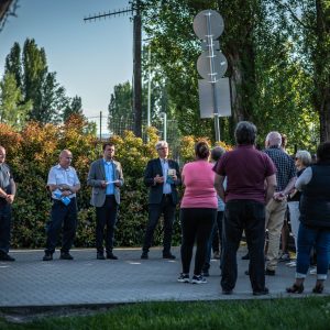 A Vasúti villasori Sarki csemege és falatozó kertjében szép számmal gyűltek össze a városrész lakói. Az érdeklődők Fülöp Zsolt polgármesterrel, Kun Csaba önkormányzati képviselővel, dr. Ignácz Dávid jegyzővel, Pilis Dániel közösségi részvételi és városfejlesztési tanácsnokkal vitathatták meg a lakóközösség problémáit. A fórumon bemutatkozott a városrészi körzeti rendész, Arnold Róbert is.