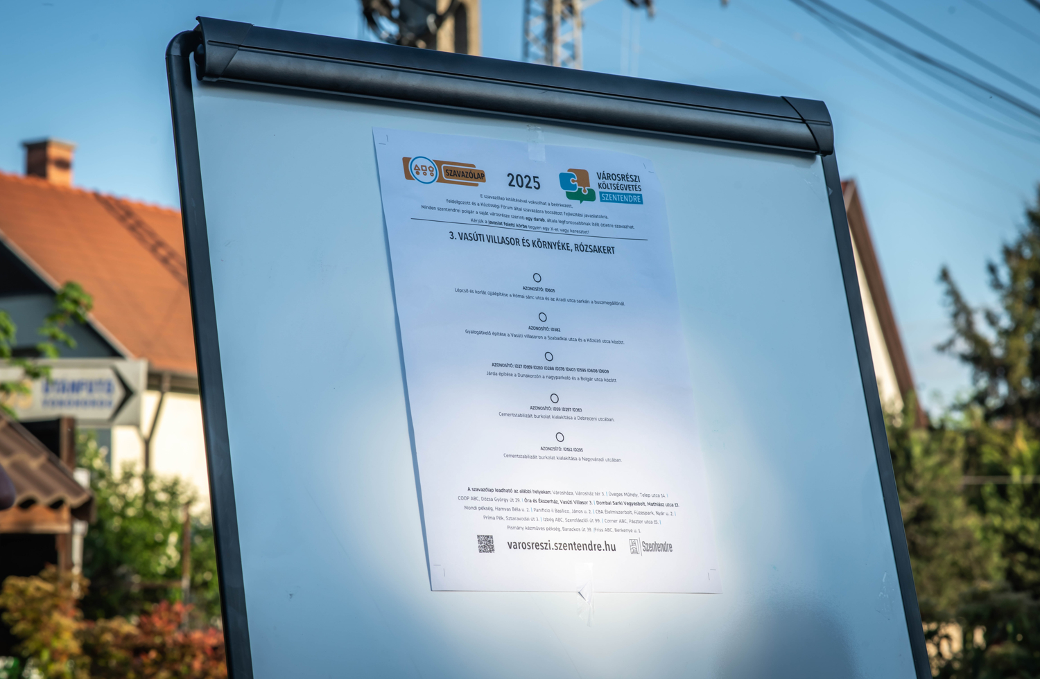 A szavazólap leadható az alábbi helyeken: Városháza, Városház tér 3. | Üveges Műhely, Telep utca 14. I COOP ABC, Dózsa György út 29. I Óra és Ékszerház, Vasúti Villasor 3. | Dombai Sarki Vegyesbolt, Mathiász utca 13. | Mondi pékség, Hamvas Béla u. 2. | Panificio il Basilico, János u. 2. | CBA Élelmiszerbolt, Füzespark, Nyár u. 2. | Príma Pék, Sztaravodai út 3. | Izbég ABC, Szentlászlói út 99. | Corner ABC, Pásztor utca 15. | Pismány kézműves pékség, Barackos út 39. |Friss ABC, Berkenye u. 1.